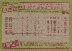 What a card: Alex Trevino played just one season for the Braves and it was in 1984 and for the first month of 1985. He was off to the Giants after that. He played for four teams within a two-year period.